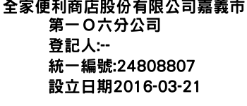 全家便利商店股份有限公司嘉義市第一O六分公司
