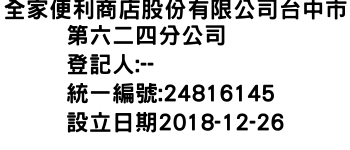 全家便利商店股份有限公司台中市第六二四分公司