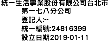 統一生活事業股份有限公司台北市第一七八分公司