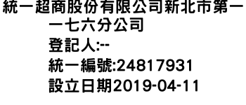 統一超商股份有限公司新北市第一一七六分公司