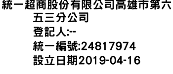 統一超商股份有限公司高雄市第六五三分公司