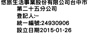 悠旅生活事業股份有限公司台中市第二十五分公司
