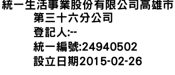 統一生活事業股份有限公司高雄市第三十六分公司