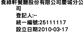 食祿軒餐廳股份有限公司慶城分公司