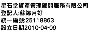 臺中市西區忠誠里臺灣大道二段501號14樓之1星石堂資產管理顧問服務有限公司-統編:25118863