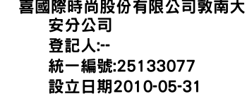 双喜國際時尚股份有限公司敦南大安分公司