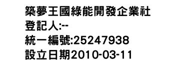 築夢王國綠能開發企業社-統編:25247938