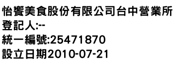 怡饗美食股份有限公司台中營業所