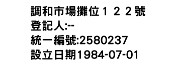 調和市場攤位122號