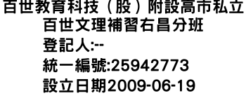 百世教育科技(股)附設高市私立百世文理補習右昌分班