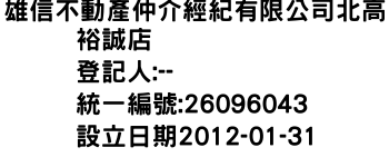 雄信不動產仲介經紀有限公司北高裕誠店