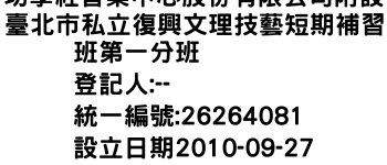 功學社音樂中心股份有限公司附設臺北市私立復興文理技藝短期補習班第一分班