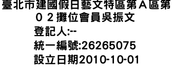 臺北市建國假日藝文特區第A區第02攤位會員吳振文