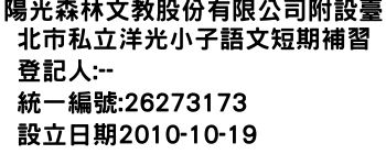 陽光森林文教股份有限公司附設臺北市私立洋光小子語文短期補習