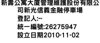 新壽公寓大廈管理維護股份有限公司新光信義金融停車場