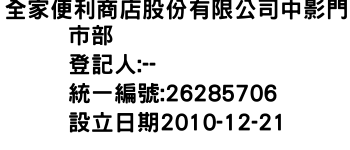 全家便利商店股份有限公司中影門市部