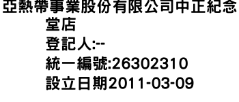 亞熱帶事業股份有限公司中正紀念堂店