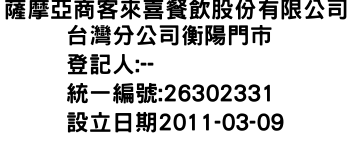 薩摩亞商客來喜餐飲股份有限公司台灣分公司衡陽門市