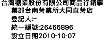 台灣糖業股份有限公司商品行銷事業部台南營業所大同直營店