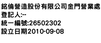銘倫營造股份有限公司金門營業處
