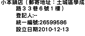 小本鎖店(郵寄地址:土城區學成路33巷6號1樓)