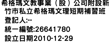 希格瑪文教事業(股)公司附設新竹市私立希格瑪文理短期補習班