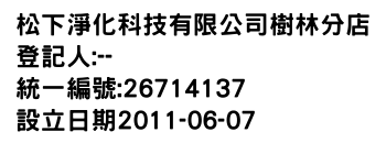 松下淨化科技有限公司樹林分店