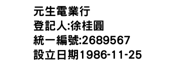統一編號:02689567