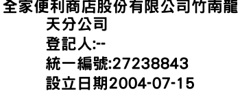 全家便利商店股份有限公司竹南龍天分公司