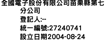全國電子股份有限公司苗栗縣第七分公司
