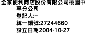 全家便利商店股份有限公司桃園中寧分公司