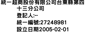 統一超商股份有限公司台東縣第四十三分公司