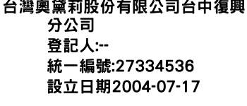 台灣奧黛莉股份有限公司台中復興分公司