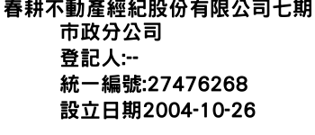 春耕不動產經紀股份有限公司七期市政分公司