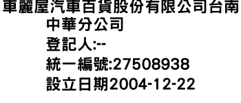 車麗屋汽車百貨股份有限公司台南中華分公司