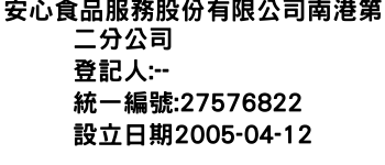 安心食品服務股份有限公司南港第二分公司