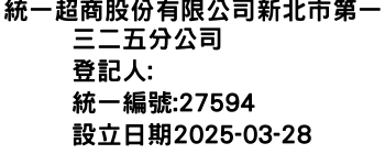 統一超商股份有限公司新北市第一三二五分公司-統編:00027594