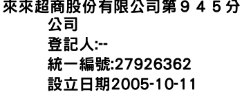 來來超商股份有限公司第945分公司