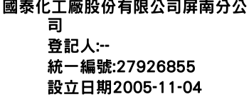 國泰化工廠股份有限公司屏南分公司-統編:27926855