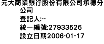 元大商業銀行股份有限公司承德分公司