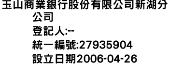 玉山商業銀行股份有限公司新湖分公司