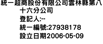 統一超商股份有限公司雲林縣第八十六分公司