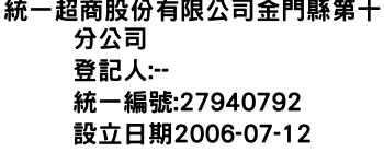 統一超商股份有限公司金門縣第十分公司