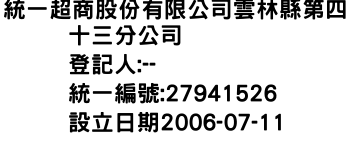 統一超商股份有限公司雲林縣第四十三分公司