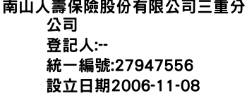 南山人壽保險股份有限公司三重分公司