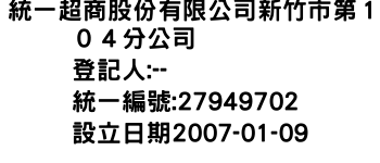 統一超商股份有限公司新竹市第104分公司