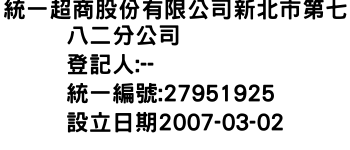 統一超商股份有限公司新北市第七八二分公司