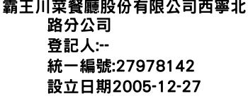 霸王川菜餐廳股份有限公司西寧北路分公司
