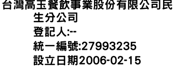 台灣高玉餐飲事業股份有限公司民生分公司