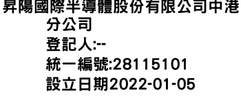 昇陽國際半導體股份有限公司中港分公司-統編:28115101